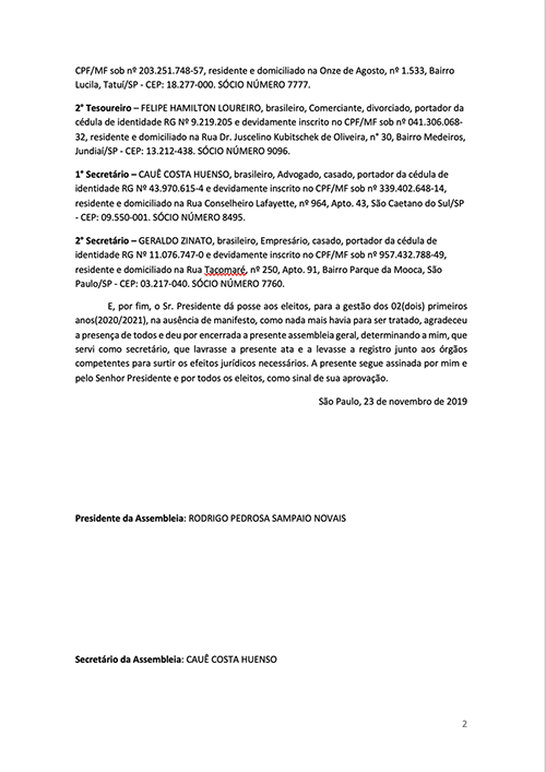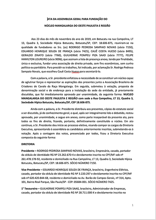Ata Assembleia de Fundação do Núcleo Mangalarga do Oeste Paulista 23/11/2019